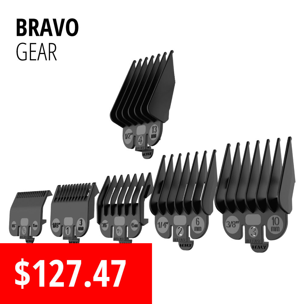 Power and precision for the most demanding cuts. GA.MA Professional Bravo Gear is a professional hair clipper with a 9300 RPM boosted motor, dual DLC-coated sintered blades (F-Wedge + Standard), cord/cordless use, and an ergonomic design. Includes interchangeable covers and 6 guide combs.
